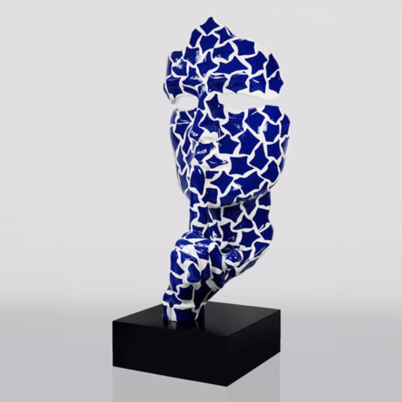 Diese Skulptur Silence mit blauer Mosaik-Oberfläche vereint künstlerische Eleganz, Handwerkskunst und zeitgenössisches Design und wird so zu einem unverzichtbaren Mittelpunkt in jedem Raum.
